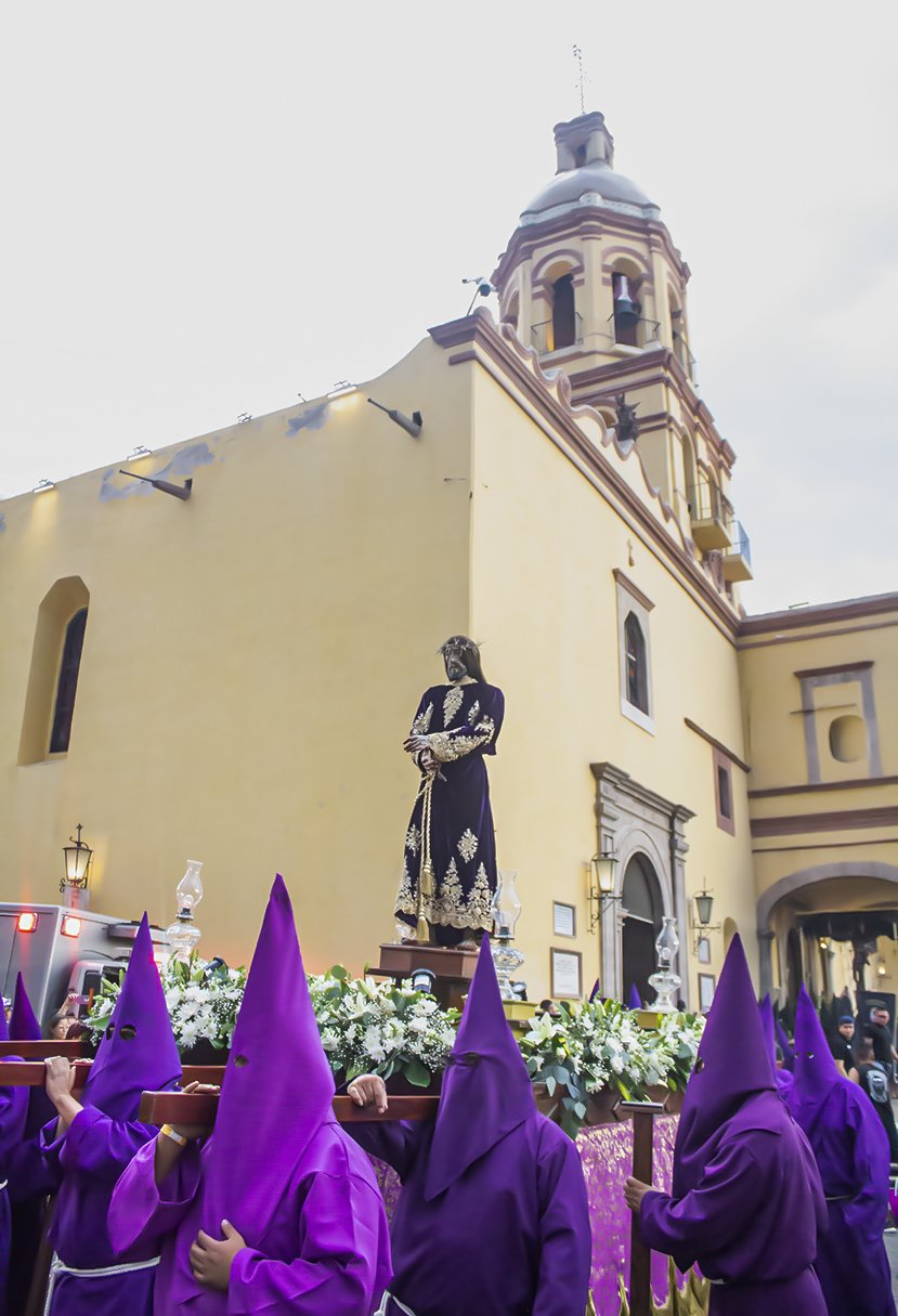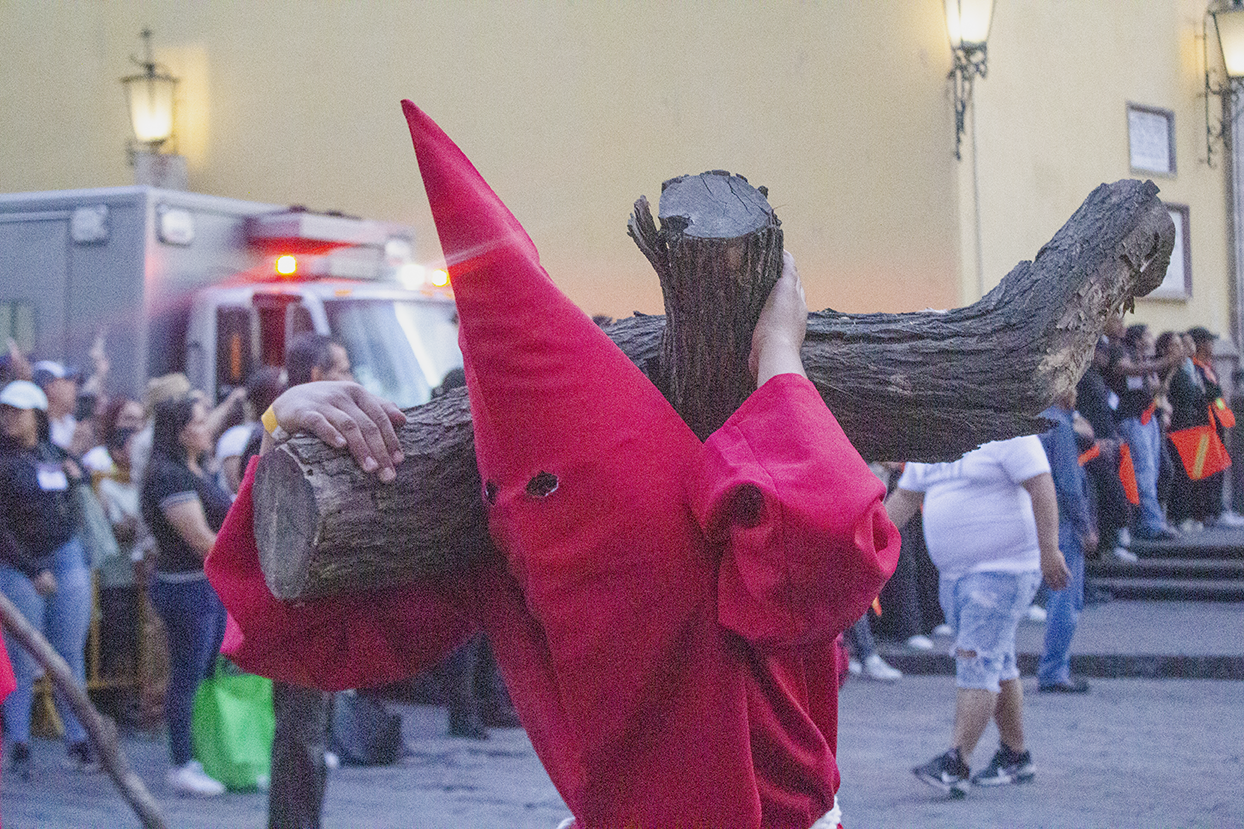 La Procesión del Silencio en Querétaro cumple 60 años. Como es habitual, este Viernes Santo dio comienzo en el Atrio del Templo de la Santa Cruz.