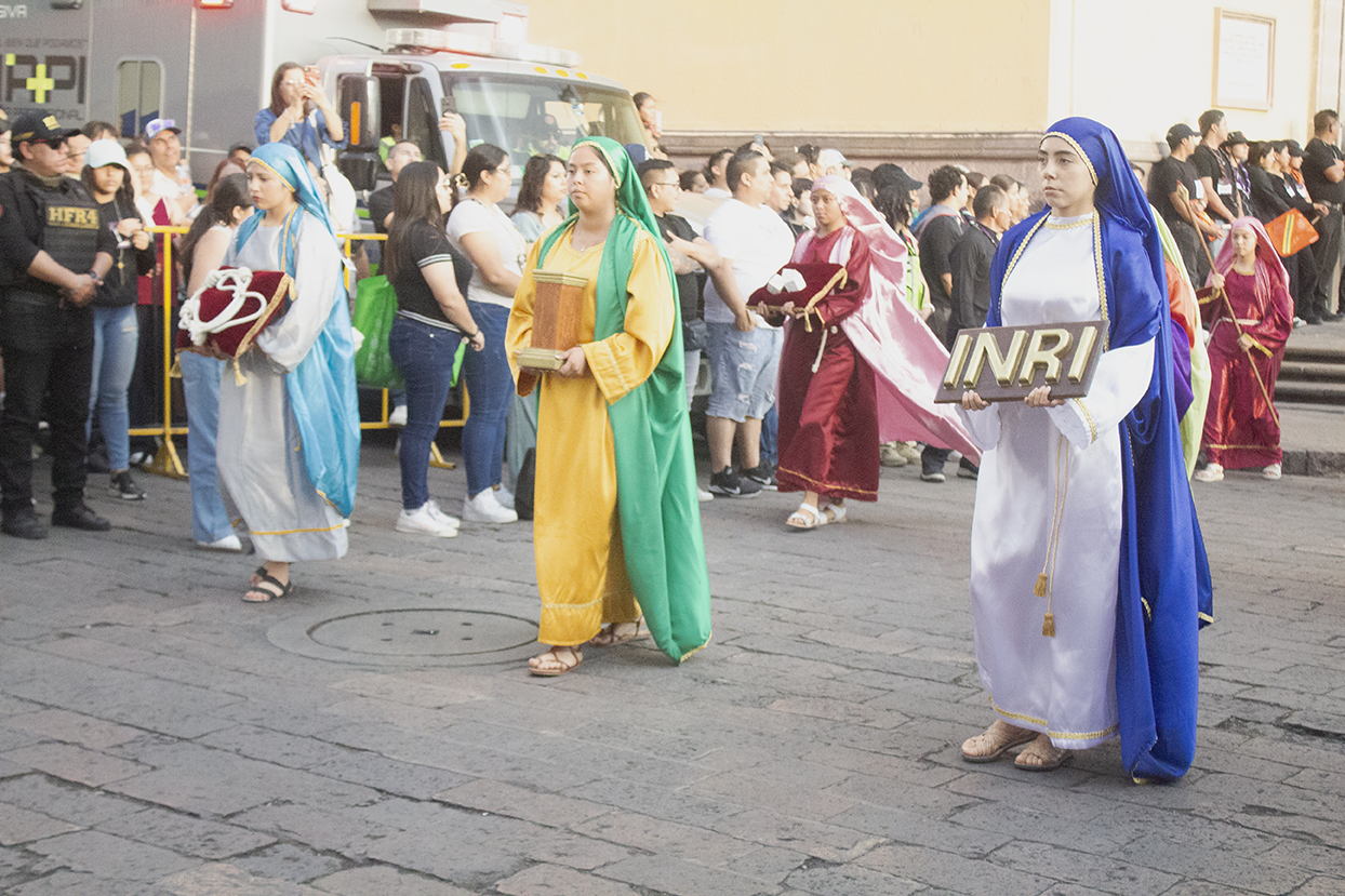«La Verónica» fue representada una vez más en este acto. Verónica, nombre adjudicado por la tradición, procede del latín, involucra la yuxtaposición de los términos vera (verdadero) e icon (imagen); que por consiguiente significa «verdadero ícono» o «verdadera imagen». Esta Santa es recordada por la Iglesia Católica cada 12 julio, se trata de una mujer piadosa, quien conmovida se acerca para limpiar sangre y sudor del rostro a Cristo, durante el Via Crucis rumbo al calvario.