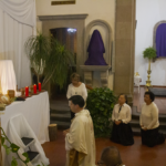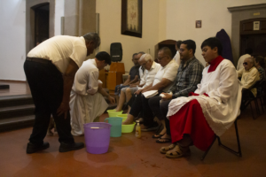 Al interior del Templo Expiatorio Diocesano de Carmelitas, la sexta estación fue desarrollada y se meditó sobre la segunda comparecencia ante Poncio Pilato. Momento en que Jesús fue coronado con espinas y condenado a muerte.