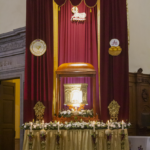En el templo de San Antoñito, fue la segunda visita, se meditó sobre el transcurso desde el huerto citado previamente hasta la casa del sumo sacerdote, Anás, donde fue interrogado y abofeteado.