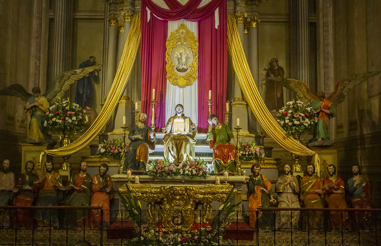 La cuarta iglesia visitada fue el templo del Espíritu Santo, una de las más antiguas en Querétaro, constituyó un centro reflexivo para la primera comparecencia de Jesús ante el mandatario romano de zona, Pilato. Allí, los judíos levantaron falsos testimonios contra él.